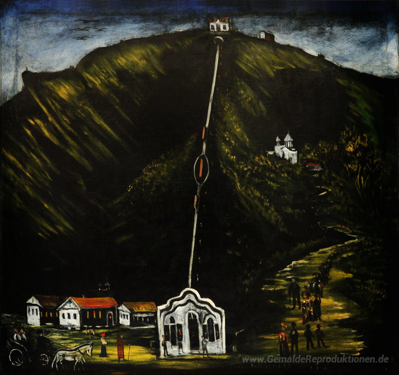 Wir bieten Ihnen eine handgefertigte Reproduktion auf Leinwand des berühmten Kunstwerks 'Die Standseilbahn Tiflis' von Niko Pirosmani, aus dem Reproduktionsmuseum.
