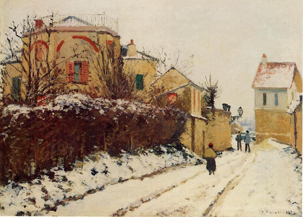 Wir bieten Ihnen eine handgefertigte Reproduktion auf Leinwand des berühmten Kunstwerks 'Die Straße der Citadelle, Pontoise' von Camille Pissarro, aus dem Reproduktionsmuseum.