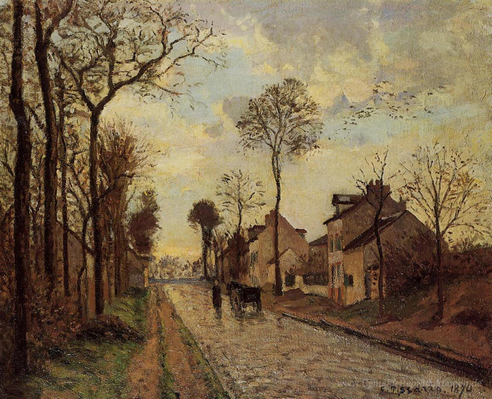 Wir bieten Ihnen eine handgefertigte Reproduktion auf Leinwand des berühmten Kunstwerks 'Die Straße Louveciennes' von Camille Pissarro, aus dem Reproduktionsmuseum.