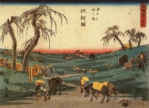 Willkommen in unserer exklusiven Kollektion von Ölgemälden, wo Kunst und Eleganz auf einzigartige Weise verschmelzen. Jedes Kunstwerk erzählt die Geschichte seines Schöpfers. Ein herausragendes Beispiel ist das Meisterwerk Die Straße zwischen Edo (Tokyo) und Kyoto von Hiroshige. Dieser bedeutende Künstler des Ukiyo-e-Stils fängt mit seinen lebendigen Farben und detailreichen Darstellungen die zeitlose Schönheit Japans ein. Seine Fähigkeit, Atmosphären zu schaffen, verstärkt das emotionale Erlebnis des Betrachters.
