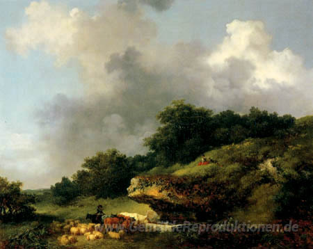 Wir bieten Ihnen eine handgefertigte Reproduktion auf Leinwand des berühmten Kunstwerks 'Die Wasserstelle' von Jean-Honore Fragonard, aus dem Reproduktionsmuseum.