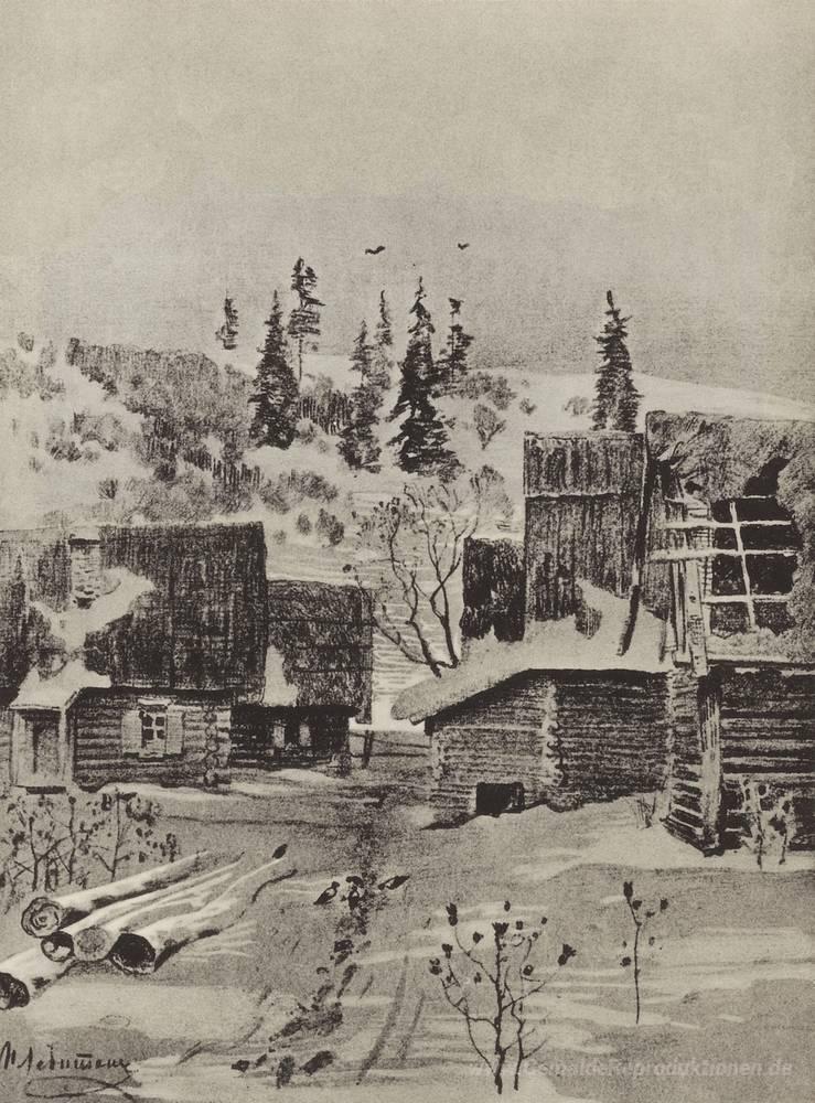 Wir bieten Ihnen eine handgefertigte Reproduktion auf Leinwand des berühmten Kunstwerks 'Dorf' von Isaac Levitan, aus dem Reproduktionsmuseum.