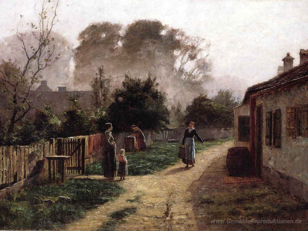 Wir bieten Ihnen eine handgefertigte Reproduktion auf Leinwand des berühmten Kunstwerks 'Dorf-Szene' von T. C. Steele, aus dem Reproduktionsmuseum.