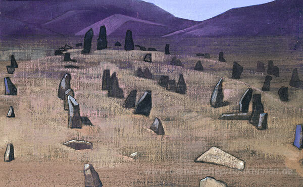 Wir bieten Ihnen eine handgefertigte Reproduktion auf Leinwand des berühmten Kunstwerks 'Doring, Tibetian Menhire.' von Nicholas Roerich, aus dem Reproduktionsmuseum.