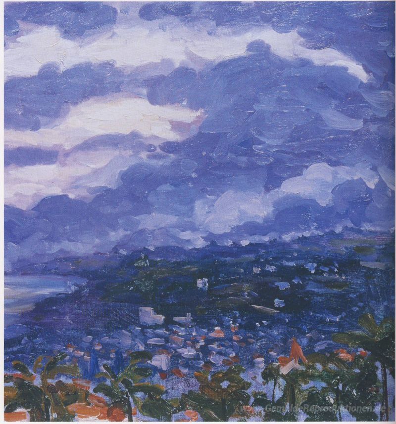 Wir bieten Ihnen eine handgefertigte Reproduktion auf Leinwand des berühmten Kunstwerks 'Ein Sturm über Cannes' von Winston Churchill, aus dem Reproduktionsmuseum.