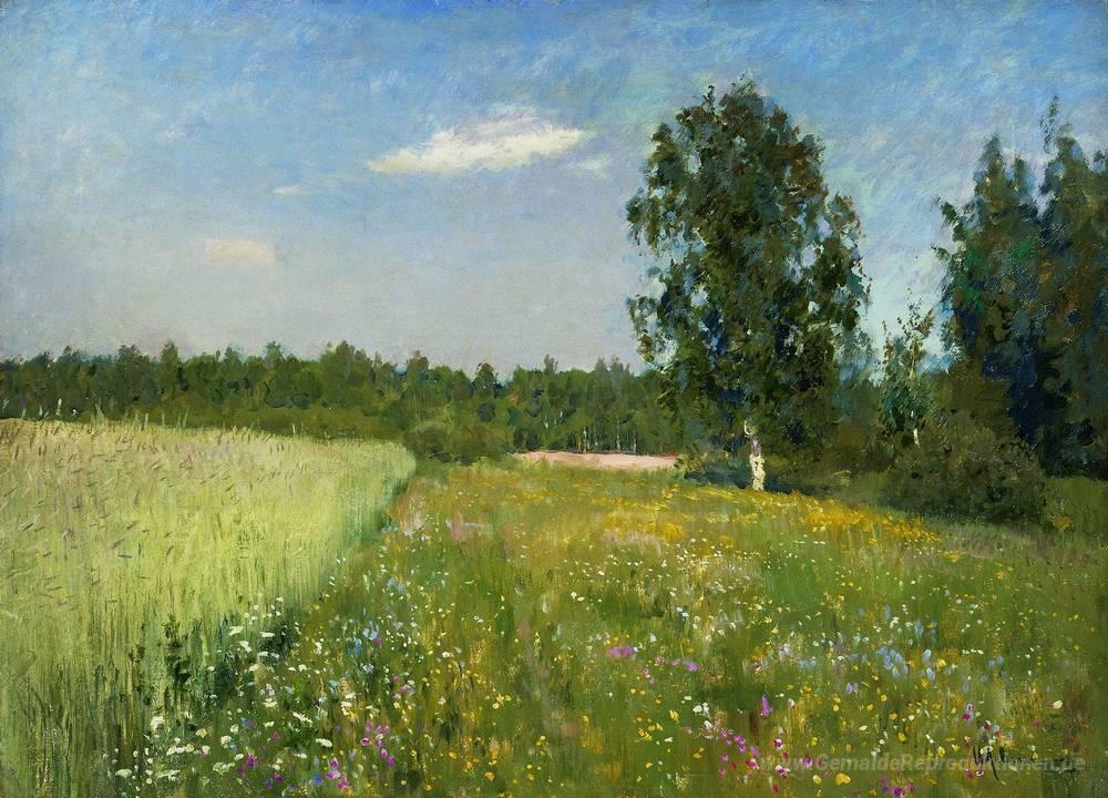 Wir bieten Ihnen eine handgefertigte Reproduktion auf Leinwand des berühmten Kunstwerks 'Ein Tag im Juni' von Isaac Levitan, aus dem Reproduktionsmuseum.