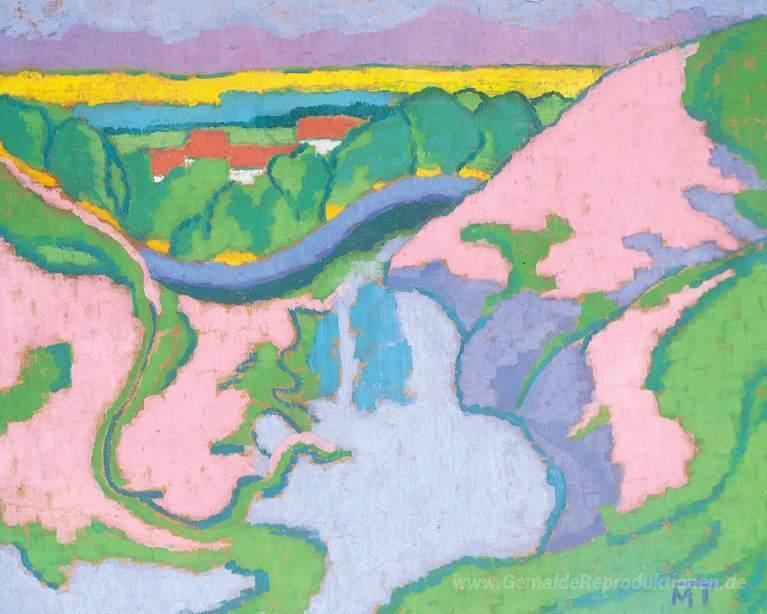 Wir bieten Ihnen eine handgefertigte Reproduktion auf Leinwand des berühmten Kunstwerks 'Eine Landschaft von Brasov' von Janos Mattis-Teutsch, aus dem Reproduktionsmuseum.