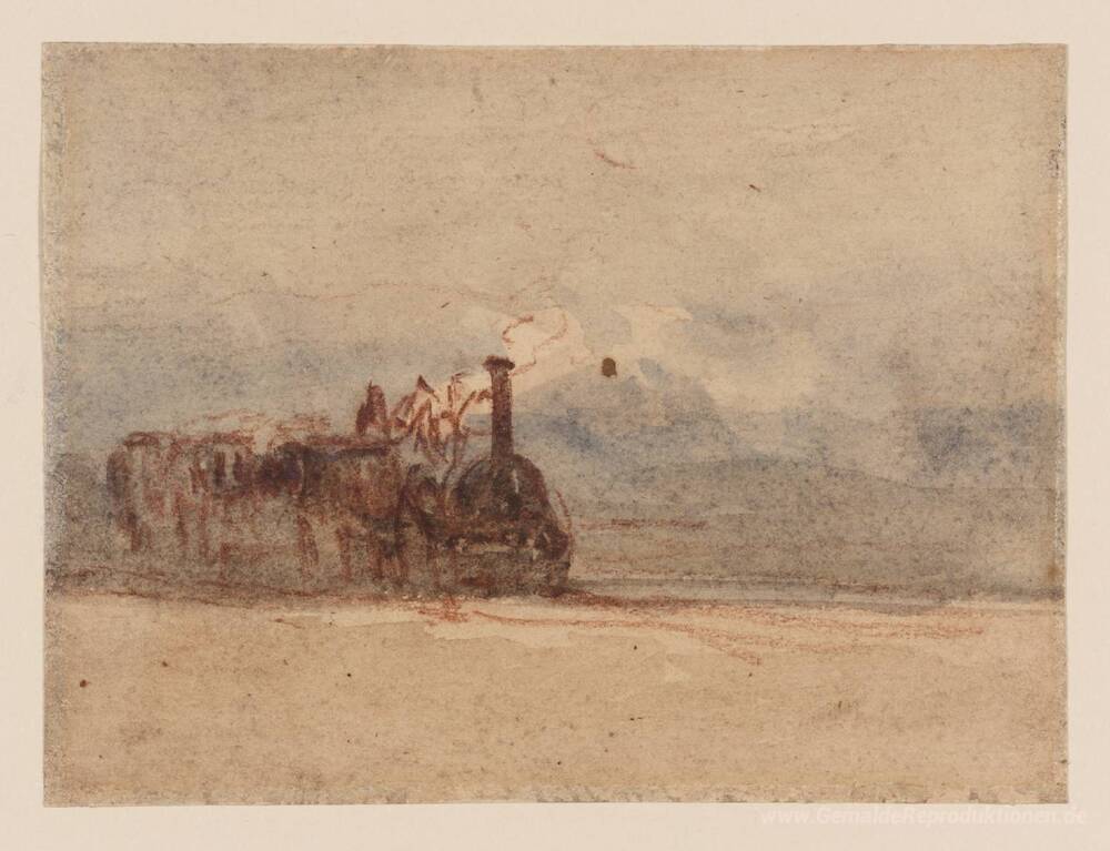 Wir bieten Ihnen eine handgefertigte Reproduktion auf Leinwand des berühmten Kunstwerks 'Eine Lokomotive' von David Cox, aus dem Reproduktionsmuseum.