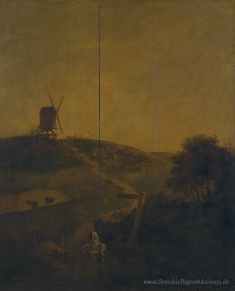 Wir bieten Ihnen eine handgefertigte Reproduktion auf Leinwand des berühmten Kunstwerks 'Eine Windmühle in der Nähe von Norwich' von John Crome, aus dem Reproduktionsmuseum.