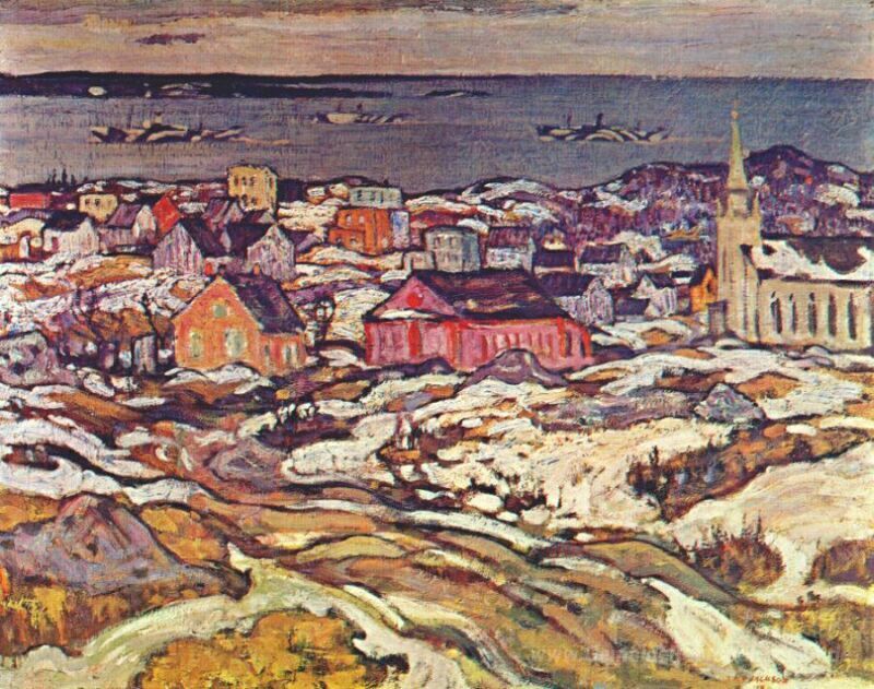 Wir bieten Ihnen eine handgefertigte Reproduktion auf Leinwand des berühmten Kunstwerks 'Eingang zum Hafen von Halifax' von A.Y. Jackson, aus dem Reproduktionsmuseum.