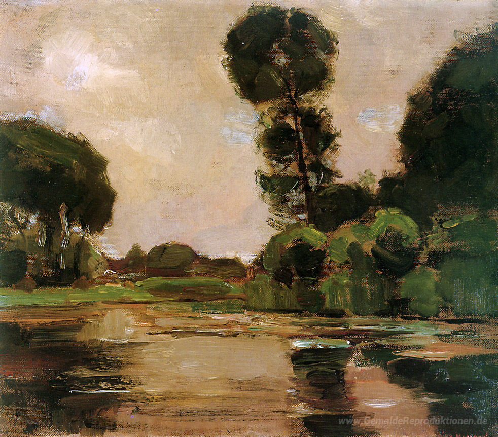 Wir bieten Ihnen eine handgefertigte Reproduktion auf Leinwand des berühmten Kunstwerks 'Einsamer Baum an der Gein Sun' von Piet Mondrian, aus dem Reproduktionsmuseum.