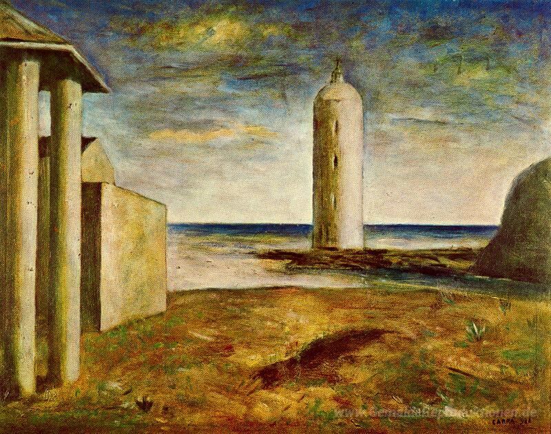 Wir bieten Ihnen eine handgefertigte Reproduktion auf Leinwand des berühmten Kunstwerks 'El Faro' von Carlo Carra, aus dem Reproduktionsmuseum.
