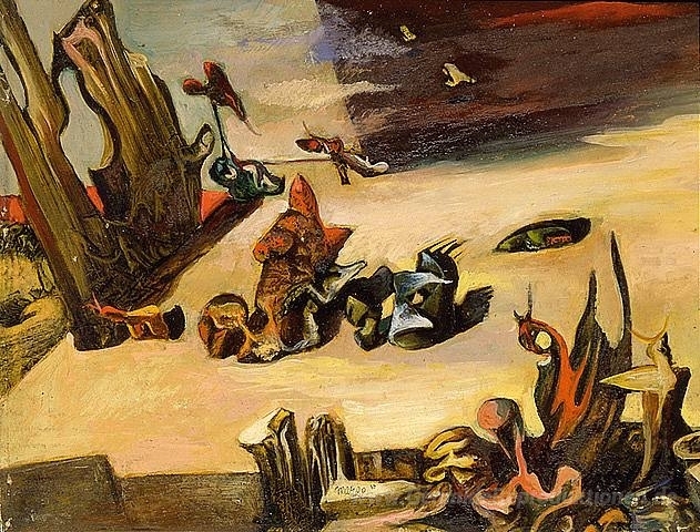 Wir bieten Ihnen eine handgefertigte Reproduktion auf Leinwand des berühmten Kunstwerks 'Enchanted Strand' von Boris Margo, aus dem Reproduktionsmuseum.