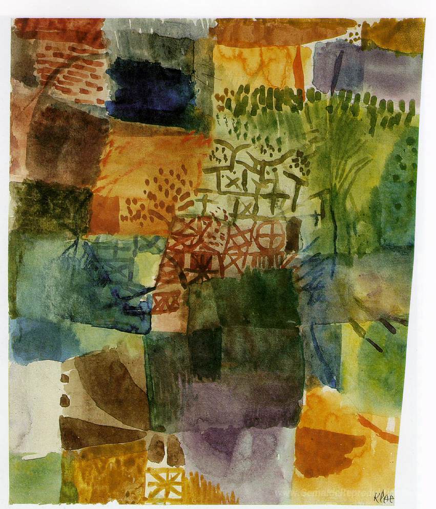 Wir bieten Ihnen eine handgefertigte Reproduktion auf Leinwand des berühmten Kunstwerks 'Erinnerung an einen Garten' von Paul Klee, aus dem Reproduktionsmuseum.