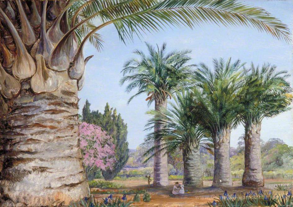 Willkommen in unserer exquisiten Sammlung von Ölgemälden, in der Kunstwerke wie Exemplare der Coquito Palm von Chile in Camden Park, New South W von der renommierten Künstlerin Marianne North die Hauptrolle spielen. Marianne North, eine Pionierin der botanischen Malerei des 19. Jahrhunderts, fängt mit ihrem einzigartigen Stil die Schönheit der Natur ein. Ihre Werke sind nicht nur kunsthandwerkliche Meisterwerke, sondern auch Fenster zu fernen Ländern und exotischen Pflanzen, die den Betrachter in eine andere Welt entführen.