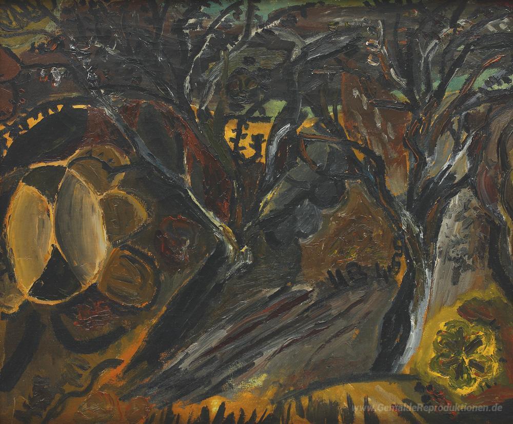 Wir bieten Ihnen eine handgefertigte Reproduktion auf Leinwand des berühmten Kunstwerks 'Expressionistische Landschaft' von Horia Bernea, aus dem Reproduktionsmuseum.