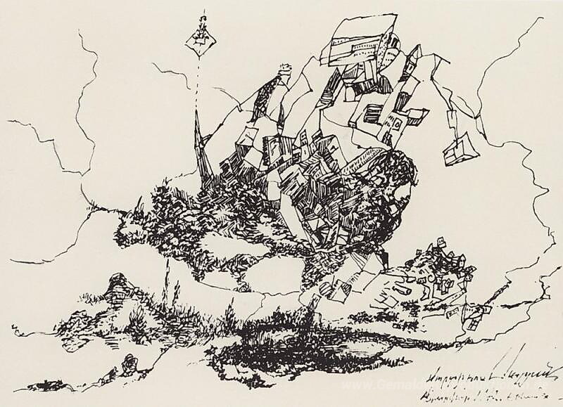 Wir bieten Ihnen eine handgefertigte Reproduktion auf Leinwand des berühmten Kunstwerks 'Fantastische Landschaft. Settlement in den Bergen.' von Martiros Saryan, aus dem Reproduktionsmuseum.