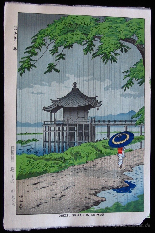 Die künstlerische Sensibilität von Asano Takeji reflektiert sich nicht nur in den sanften Farbtönen, sondern auch in der meisterhaften Darstellung von Licht und Schatten. Feiner Regen in Ukimido zieht Betrachter in seinen Bann und schafft eine friedliche Stimmung, die den Charakter jedes Raumes bereichert. Entdecken Sie die Schönheit und den emotionalen Ausdruck, die durch sorgfältige Handwerkskunst und kreative Visionen entstehen, und verleihen Sie Ihrem Zuhause mit diesen außergewöhnlichen Werken einen Hauch von Eleganz und Inspiration.