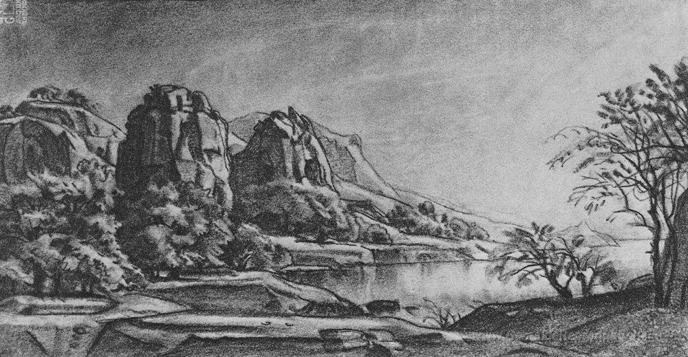 Wir bieten Ihnen eine handgefertigte Reproduktion auf Leinwand des berühmten Kunstwerks 'Felsige Küste' von Konstantin Bogaevsky, aus dem Reproduktionsmuseum.