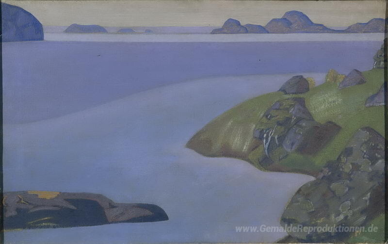 Wir bieten Ihnen eine handgefertigte Reproduktion auf Leinwand des berühmten Kunstwerks 'Felsige Küste' von Nicholas Roerich, aus dem Reproduktionsmuseum.