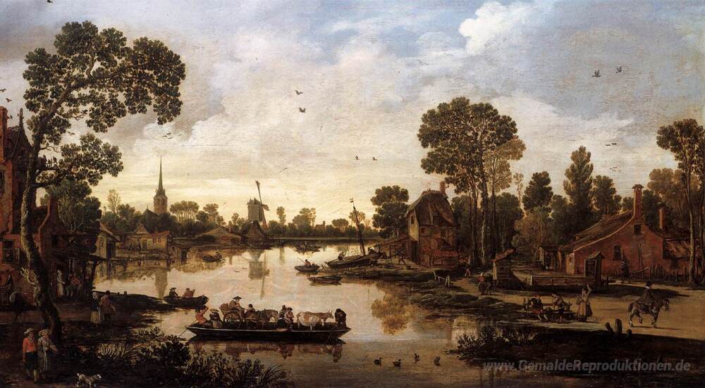 Wir bieten Ihnen eine handgefertigte Reproduktion auf Leinwand des berühmten Kunstwerks 'Ferry Boat' von Esaias van de Velde, aus dem Reproduktionsmuseum.