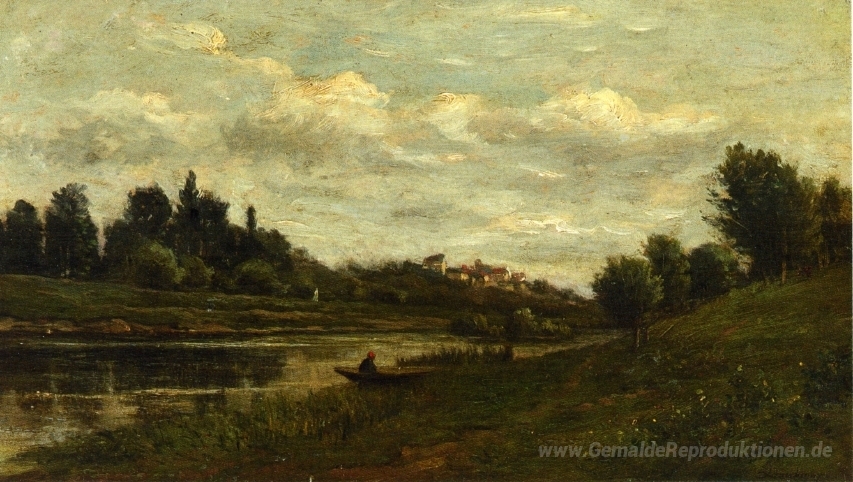 Wir bieten Ihnen eine handgefertigte Reproduktion auf Leinwand des berühmten Kunstwerks 'Fischer am Ufer des Flusses' von Charles-Francois Daubigny, aus dem Reproduktionsmuseum.