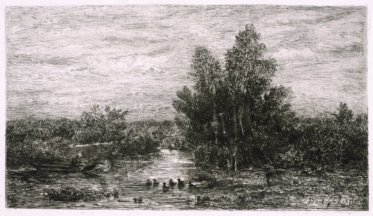 Wir bieten Ihnen eine handgefertigte Reproduktion auf Leinwand des berühmten Kunstwerks 'Fischer auf dem Fluss mit Enten' von Charles-Francois Daubigny, aus dem Reproduktionsmuseum.