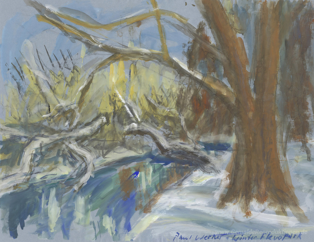 Wir bieten Ihnen eine handgefertigte Reproduktion auf Leinwand des berühmten Kunstwerks 'Flevo-Park im Winter, Amsterdam' von Paul Werner, aus dem Reproduktionsmuseum.