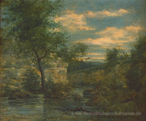 Wir bieten Ihnen eine handgefertigte Reproduktion auf Leinwand des berühmten Kunstwerks 'Flussufer' von Gustave Courbet, aus dem Reproduktionsmuseum.