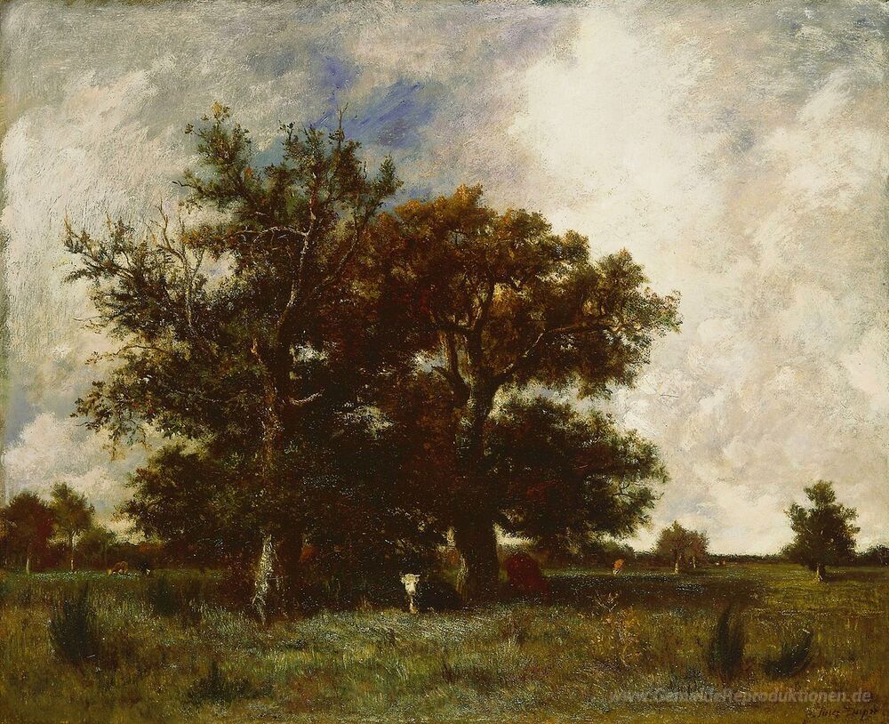 Wir bieten Ihnen eine handgefertigte Reproduktion auf Leinwand des berühmten Kunstwerks 'Fontainebleau Oaks' von Jules Dupre, aus dem Reproduktionsmuseum.