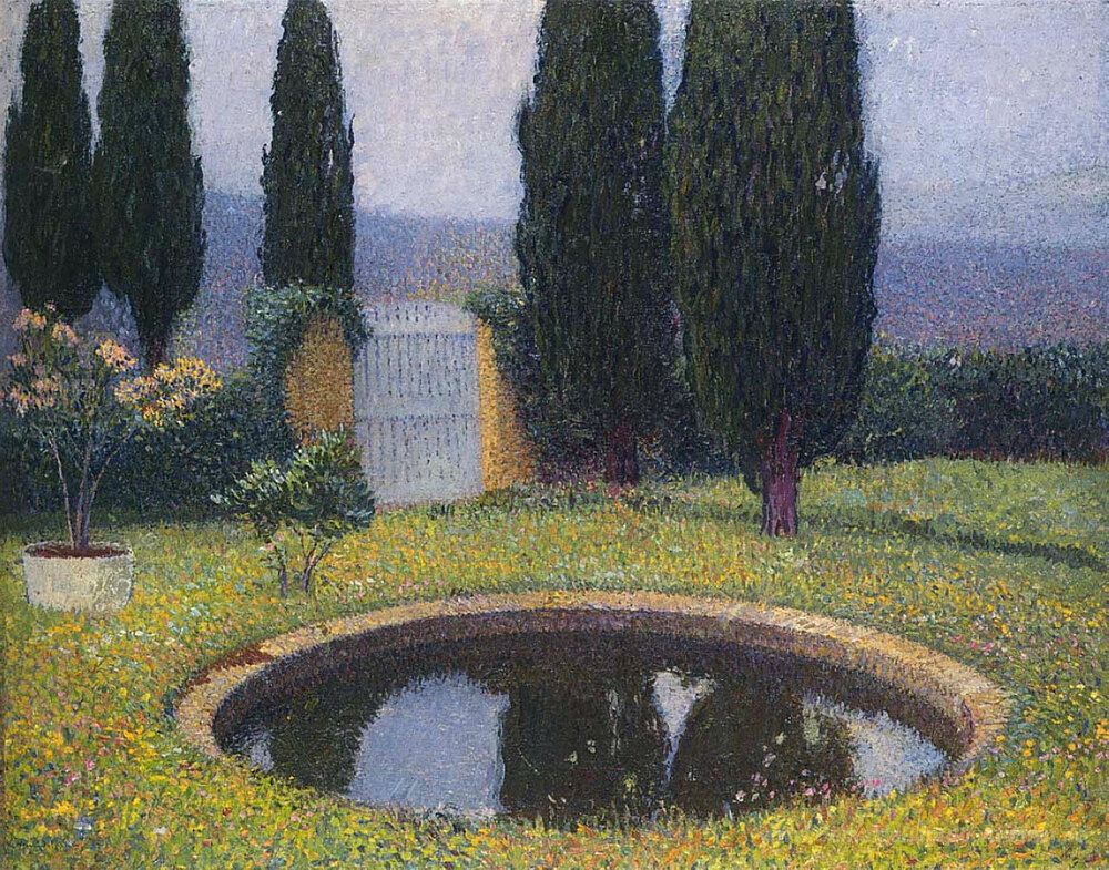 Wir bieten Ihnen eine handgefertigte Reproduktion auf Leinwand des berühmten Kunstwerks 'Fountain in Labastide du Vert' von Henri Martin, aus dem Reproduktionsmuseum.