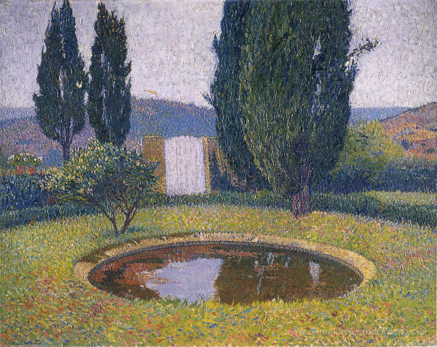 Wir bieten Ihnen eine handgefertigte Reproduktion auf Leinwand des berühmten Kunstwerks 'Fountain in Marquayrol' von Henri Martin, aus dem Reproduktionsmuseum.