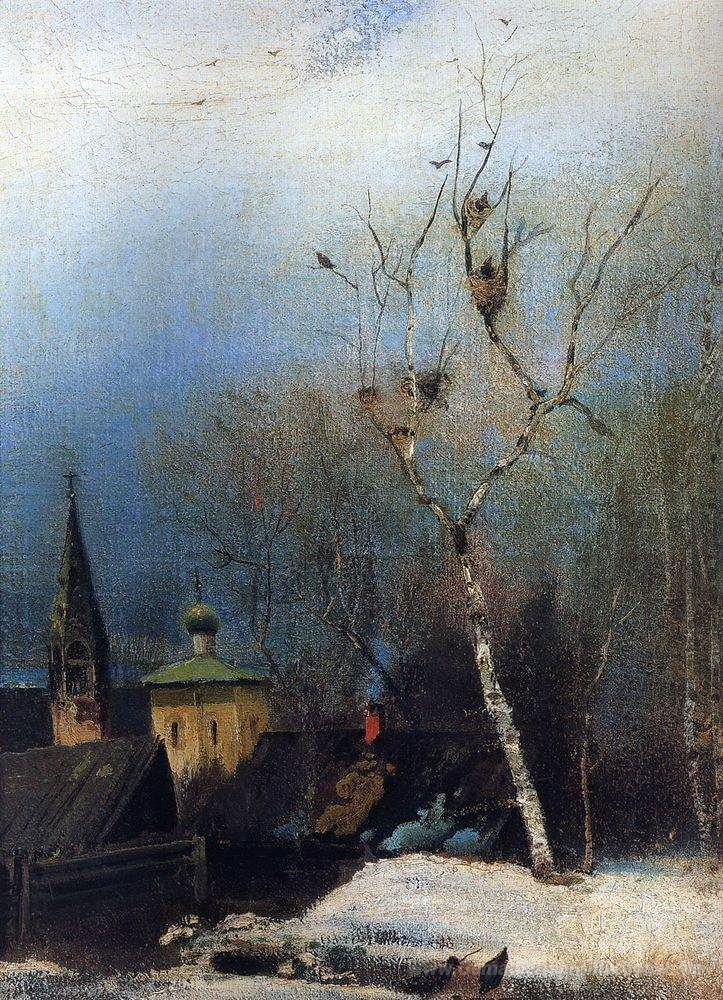 Wir bieten Ihnen eine handgefertigte Reproduktion auf Leinwand des berühmten Kunstwerks 'Früher Frühling' von Aleksey Savrasov, aus dem Reproduktionsmuseum.