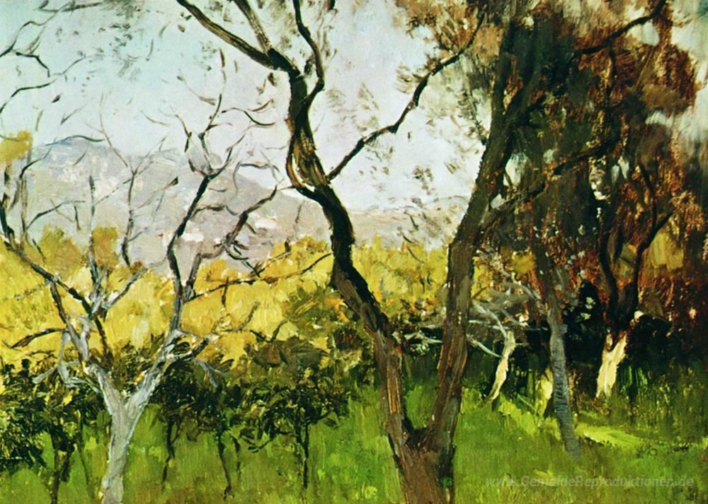 Wir bieten Ihnen eine handgefertigte Reproduktion auf Leinwand des berühmten Kunstwerks 'Frühling auf der Krim' von Isaac Levitan, aus dem Reproduktionsmuseum.