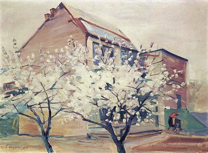 Wir bieten Ihnen eine handgefertigte Reproduktion auf Leinwand des berühmten Kunstwerks 'Frühling in meinem Garten' von Martiros Saryan, aus dem Reproduktionsmuseum.