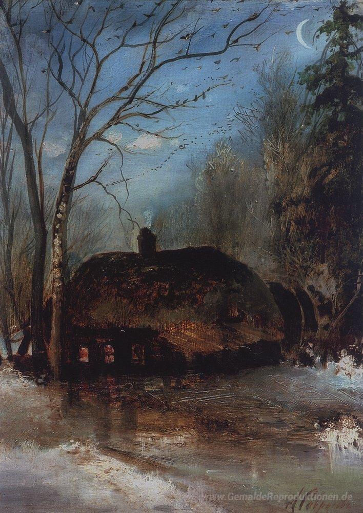 Wir bieten Ihnen eine handgefertigte Reproduktion auf Leinwand des berühmten Kunstwerks 'Frühlingslandschaft mit Häuschen' von Aleksey Savrasov, aus dem Reproduktionsmuseum.
