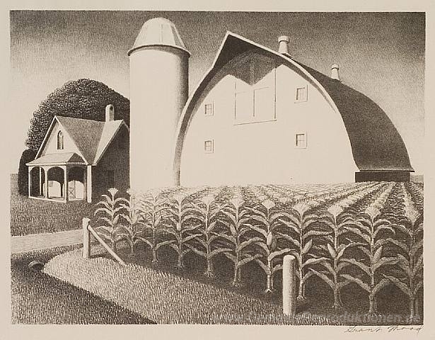 Wir bieten Ihnen eine handgefertigte Reproduktion auf Leinwand des berühmten Kunstwerks 'Fruchtbarkeit' von Grant Wood, aus dem Reproduktionsmuseum.