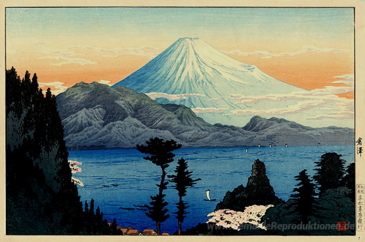 Wir bieten Ihnen eine handgefertigte Reproduktion auf Leinwand des berühmten Kunstwerks 'Fuji von Kurasawa' von Shotei Takahashi, aus dem Reproduktionsmuseum.
