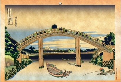 Wir bieten Ihnen eine handgefertigte Reproduktion auf Leinwand des berühmten Kunstwerks 'Fukagawa Mannen Bashi Shita' von Katsushika Hokusai, aus dem Reproduktionsmuseum.