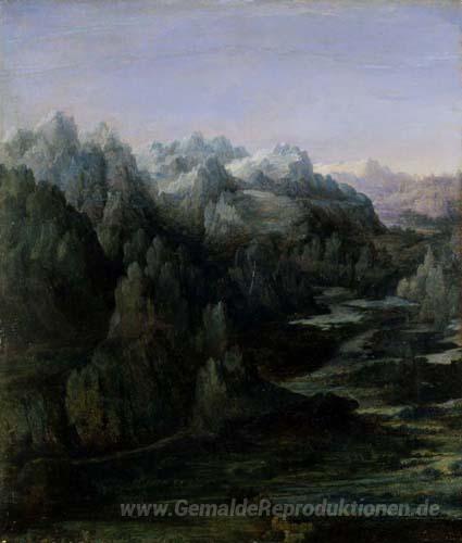 Wir bieten Ihnen eine handgefertigte Reproduktion auf Leinwand des berühmten Kunstwerks 'Gebirge' von Albrecht Altdorfer, aus dem Reproduktionsmuseum.