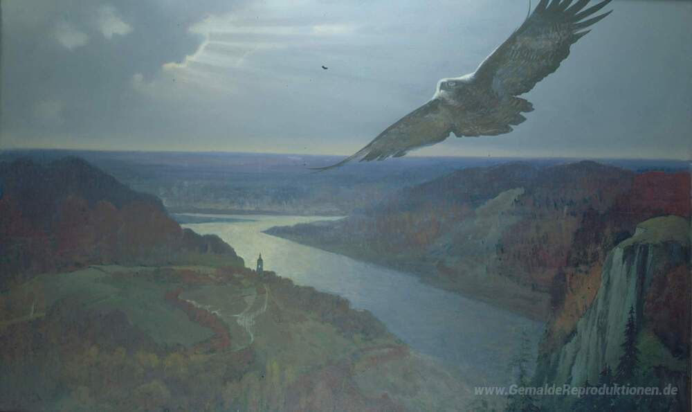 Wir bieten Ihnen eine handgefertigte Reproduktion auf Leinwand des berühmten Kunstwerks 'Geburt der Donau' von Konstantin Vasilyev, aus dem Reproduktionsmuseum.