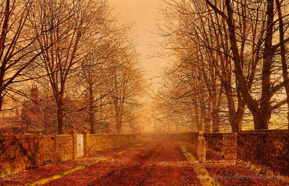 Wir bieten Ihnen eine handgefertigte Reproduktion auf Leinwand des berühmten Kunstwerks 'Golden Light' von John Atkinson Grimshaw, aus dem Reproduktionsmuseum.