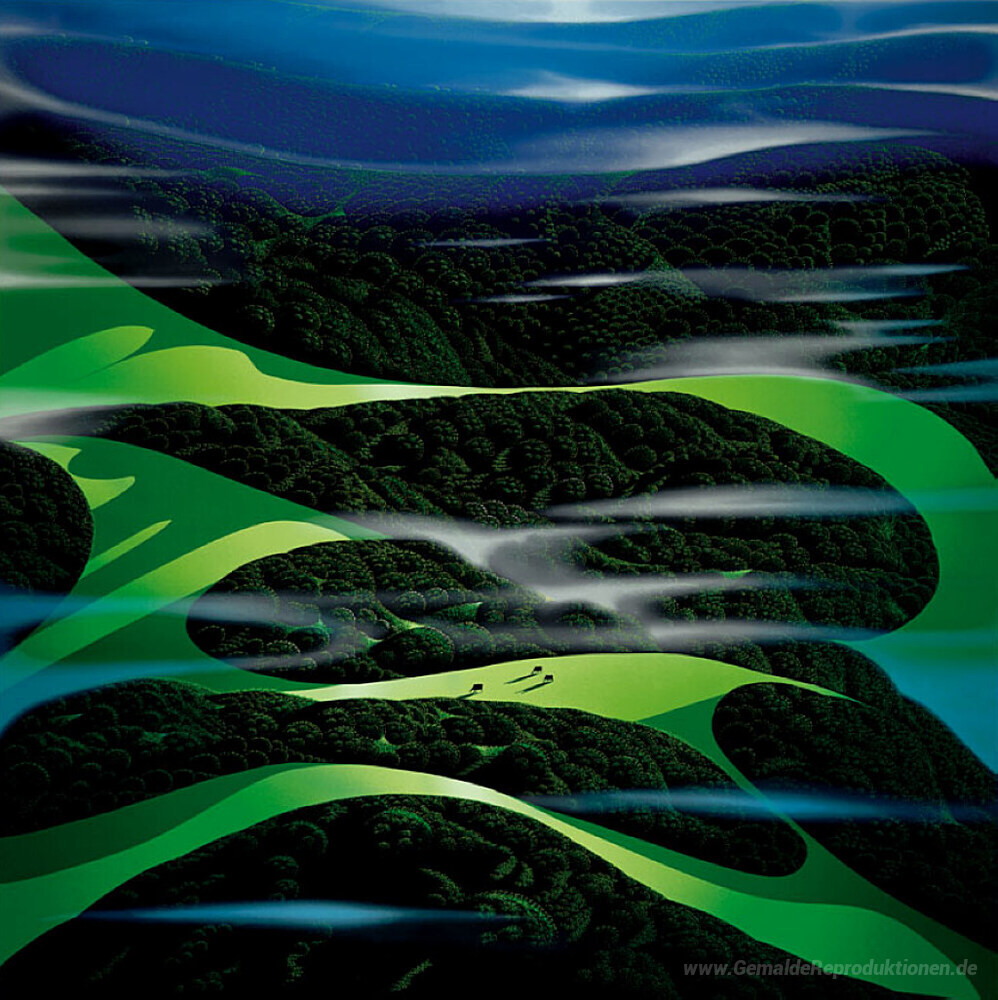 Eyvind Earle war bekannt für seinen einzigartigen Stil, der klassische Elemente mit einer modernen Perspektive vereint. Seine kunstvollen Techniken verleihen den Gemälden eine tiefgehende Textur und Atmosphäre. Das Gemälde Grüne Felder bringt die lebendige Frische der Natur in jeden Raum und schafft eine einladende Umgebung, die zum Verweilen einlädt. Gerade in Wohn- oder Arbeitsbereichen verbreitet dieses Kunstwerk eine inspirierende Wirkung, die sowohl Ruhe als auch Kreativität fördert.