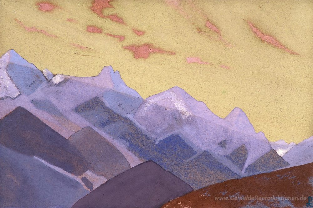 Wir bieten Ihnen eine handgefertigte Reproduktion auf Leinwand des berühmten Kunstwerks 'Grat. Ansätze zur Everest' von Nicholas Roerich, aus dem Reproduktionsmuseum.
