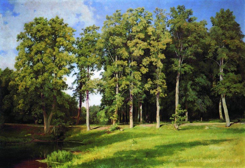 Willkommen in der faszinierenden Welt der Ölgemälde, wo Kunst und Emotion in einem harmonischen Zusammenspiel erstrahlen. Eines der herausragendsten Werke ist Grove durch den Teich. Preobrazhenskoye, geschaffen von dem Meister der Landschaftsmalerei, Ivan Shishkin. Dieses Gemälde zeigt die atemberaubende Schönheit der Natur und illustriert Shishkins bemerkenswerte Fähigkeit, Licht und Schatten in seiner Komposition zu meistern.