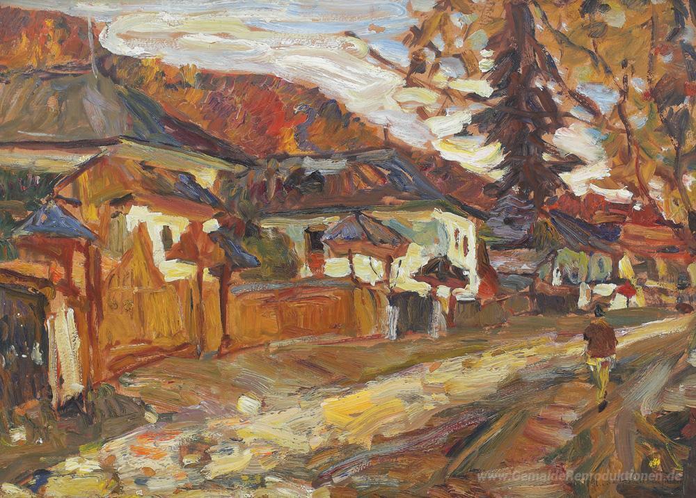 Wir bieten Ihnen eine handgefertigte Reproduktion auf Leinwand des berühmten Kunstwerks 'Häuser in Argeş Tal' von Rudolf Schweitzer-Cumpana, aus dem Reproduktionsmuseum.