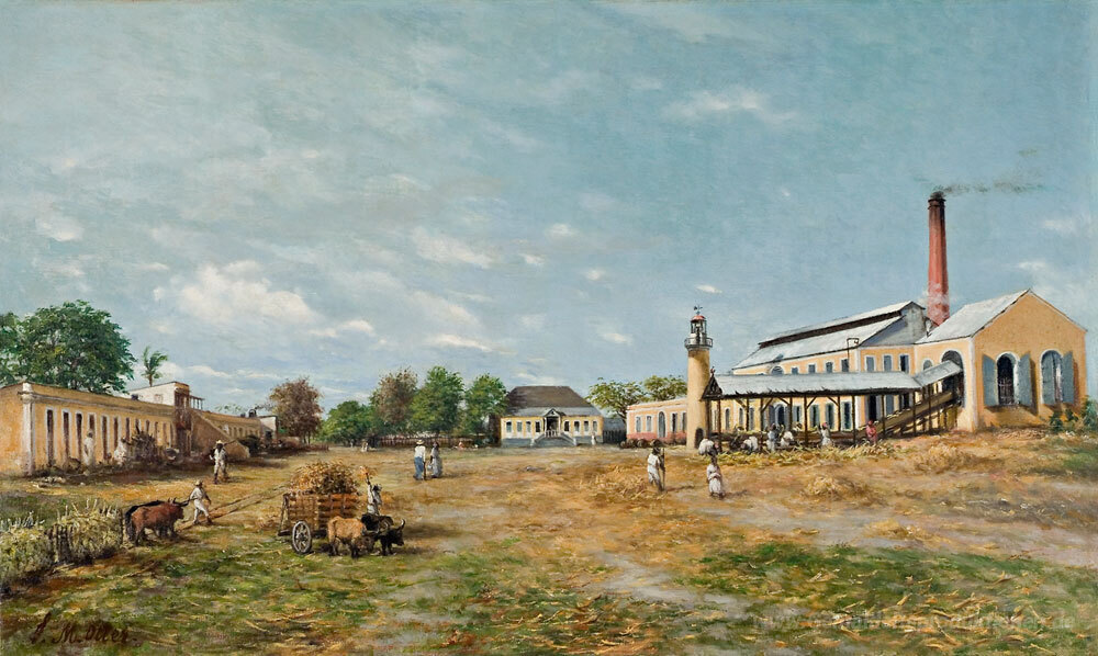 Wir bieten Ihnen eine handgefertigte Reproduktion auf Leinwand des berühmten Kunstwerks 'Hacienda La Fortuna' von Francisco Oller, aus dem Reproduktionsmuseum.