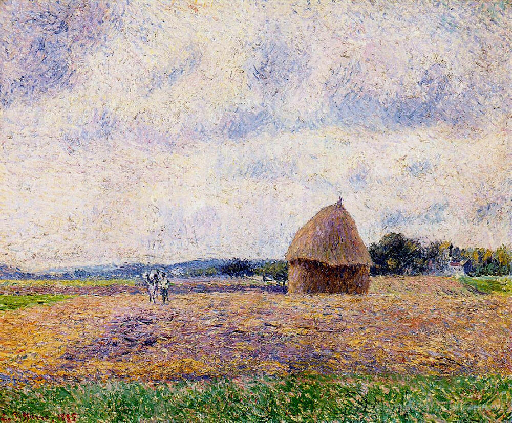 Wir bieten Ihnen eine handgefertigte Reproduktion auf Leinwand des berühmten Kunstwerks 'Haystack Eragny' von Camille Pissarro, aus dem Reproduktionsmuseum.