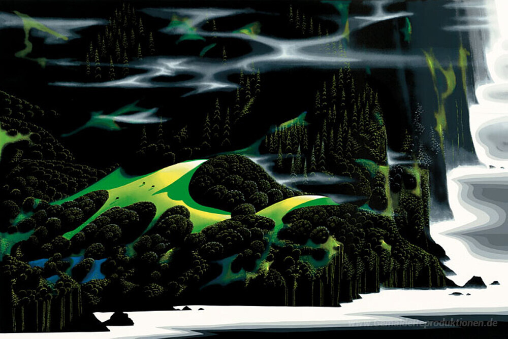 Wir bieten Ihnen eine handgefertigte Reproduktion auf Leinwand des berühmten Kunstwerks 'Haze von Vorfrühling' von Eyvind Earle, aus dem Reproduktionsmuseum.