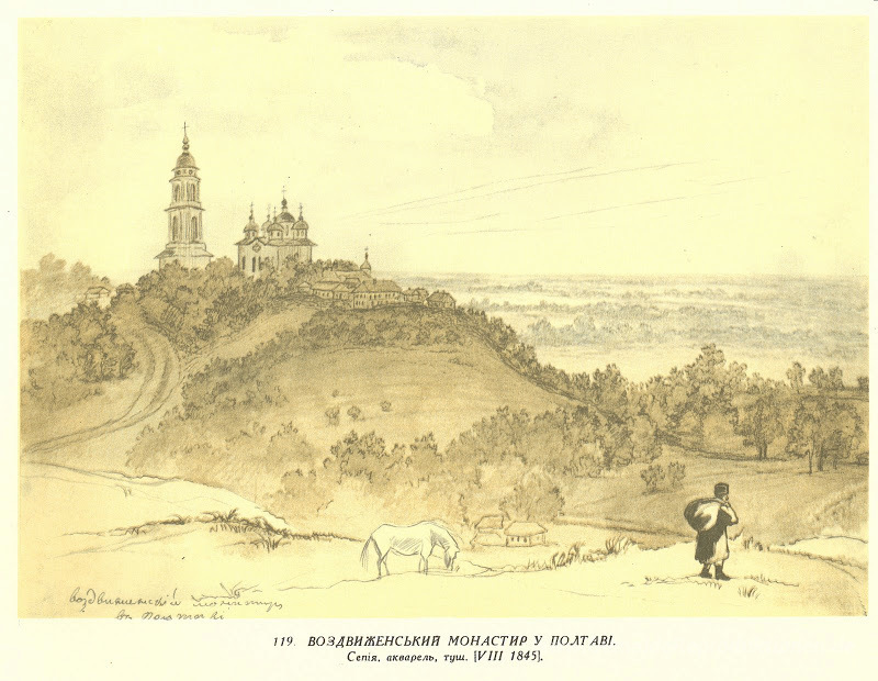 Wir bieten Ihnen eine handgefertigte Reproduktion auf Leinwand des berühmten Kunstwerks 'Heilig-Kreuz-Kloster in Poltawa' von Taras Shevchenko, aus dem Reproduktionsmuseum.